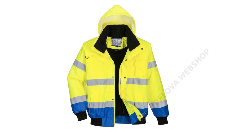 C465 HI-VIS KONTRASZT BOMBER DZSEKI, SÁRGA/KIRÁLYKÉK