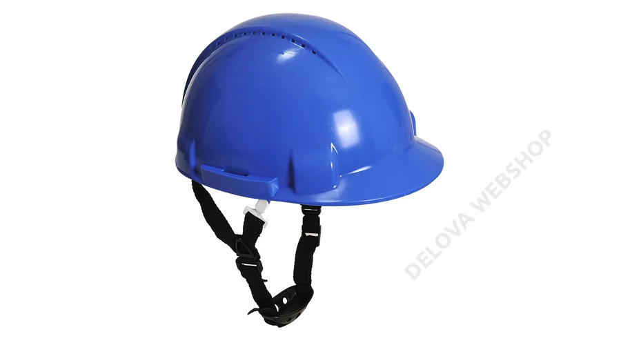 Szellőző sisak, magasságban történő munkavégzésre. Polietilén héj, 6 pontos fejkosár. Izzadtság szalaggal és 4 pontos állszíjjal.